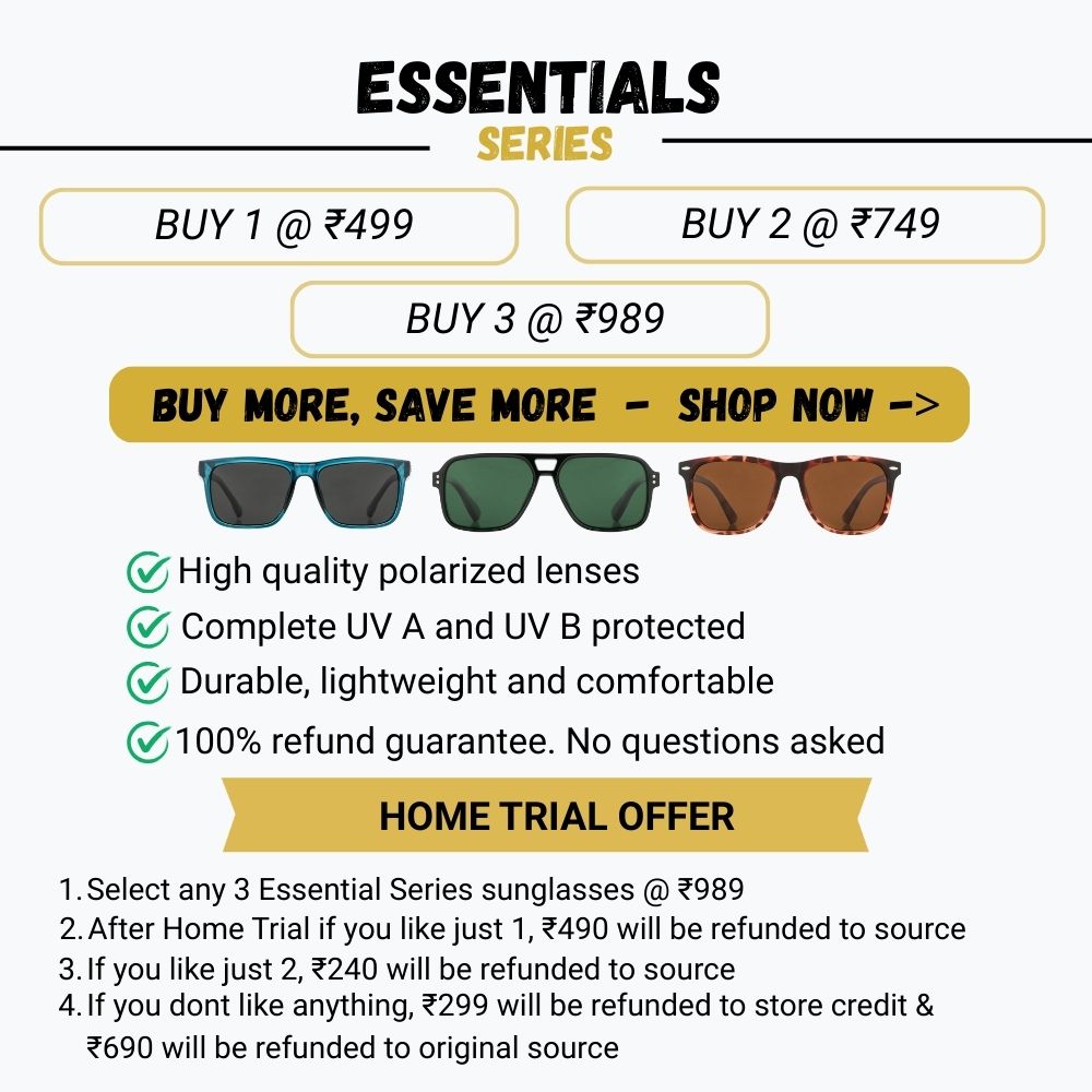 Yes its absolutely free. You will be charged only for sunglass you keep, rest amount will be refunded to source. Incase you don't like any, ₹299 will credited to "Store Credit" and rest amount will be credited to original source.